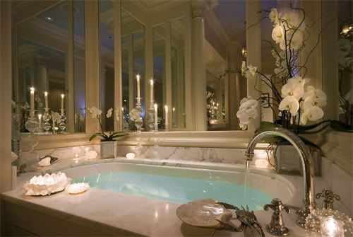 I would give anything to be in this beautiful bath tub, relaxing, reading a book without any other care in the world. In my home, when I get one, I will be sure to make my bath look exactly like this.